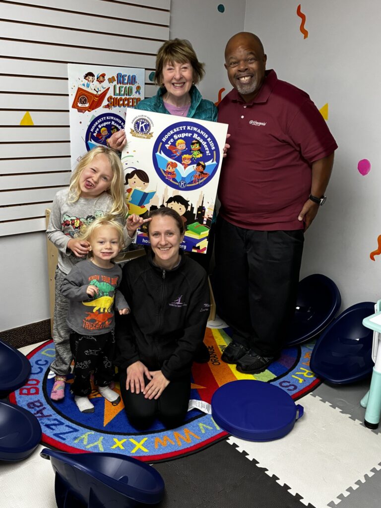 Kiwanis knows that reading isn’t just about the library; it’s an integral part of life. To that end, Kiwanians Tim and Rachel Sweeney and Oliver Mack, representing the Kiwanis Community Service Committee, installed a reading nook for children at The Zoo Health Club in Hooksett. Kiddos can enjoy books while their parents get fit. Now thatis a well-rounded fitness program. Just look at those happy faces!