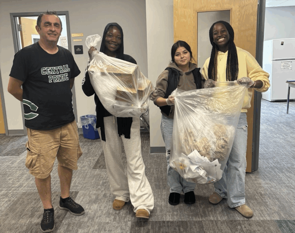 Looking ahead to November, students plan to continue supporting the clothing closets and food pantry, finish organizing the English department books, and help at a water stop at Stark Park for a local run.